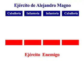- El "martillo" correspondía a la caballería pesada de los hetairoi que intervenían justo después.