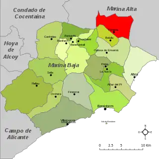![]() Localización en la comarca de la Marina Baja