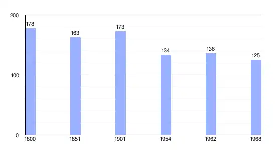 Los datos demográficos contemplados en este gráfico de la comuna de Tôtes[5] se han cogido de 1800 a 1968 de la página francesa EHESS/Cassini.
