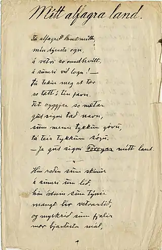 ![]() Manuscrito original del poema de Símun av Skarði, que se convirtió en el himno nacional | ||