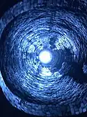 ![]() Vista del segundo pozo de ventilación desde dentro del túnel