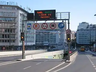 El túnel cuenta con un conjunto de equipos de control y seguridad del tráfico instalados en los accesos al interior del túnel. Paneles de mensajes variables permiten el controo de la vía y la indicación del límite de velocidad (50 km/h) y de peligros varios. Cuarenta cámaras de vigilancia son monotorizadas en una sala de comando, en el centro do túnel, el cual esta igualmente conectado a los puestos de emergencia instalados en varios puntos del túnel y equipados con teléfonos de emergencia.