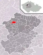 Se encuentra ubicada al noroeste de la región y de Praga, a poca distancia al norte del río Berounka —un afluente izquierdo del río Moldava—, y cerca de la frontera con la región de Ústí nad Labem.[1]