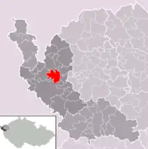 Se encuentra ubicada al oeste de la región, cerca de la orilla del río Ohře —un afluente izquierdo del río Elba— y de la frontera con Alemania.[1]