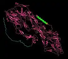 Esta proteína conformada por una secuencia de 1657 aminoácidos, cuyo peso molecular es de aproximadamente 260 000Da (o 260 kDa), está dividida en tres partes: