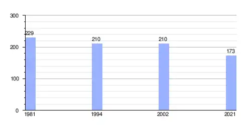 Hasta 2021 la población era de 173 habitantes,[2] con una densidad de población de 17,04 habitantes por kilómetro cuadrado.[2]