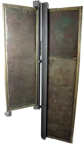 La inscripción latina fue publicada por primera vez por Michel Maittaire en 1735.[3][4] Heinrich Eduard Dirksen (Berlín, 1817–1820) y Friedrich Carl von Savigny han hecho comentarios legales, en su Vermischte Schriften vol. iii. Ambas inscripciones fueron publicadas con comentarios por Alessio Simmacho Mazzocchi (1684–1771)[5] (2 vols. fol. Nápoles, 1754, 1755). La otra inscripción está en griego dórico.[1]