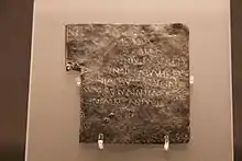 - Esta obra contiene una traducción total derivada de «Bath curse tablets» de Wikipedia en inglés, concretamente de esta versión del 16 de mayo de 2020, publicada por sus editores bajo la Licencia de documentación libre de GNU y la Licencia Creative Commons Atribución-CompartirIgual 4.0 Internacional.