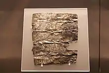 Las tablillas, algunas en estado fragmentario,[4] eran pequeñas y rectangulares e inicialmente se supuso que estaban hechas de plomo, aunque los análisis metalúrgicos posteriores revelaron que, de hecho, están hechas de plomo y estaño, con trazas ocasionales de cobre.[5] Algunas de las tablillas se fundieron bajo presión en láminas delgadas y flexibles con un acabado tan liso como el papel, mientras que otras parecen haber sido sacadas a martillazos de un bloque fundido.[6] La mayoría de las tablillas estaban inscritas, ya sea con mayúsculas romanas o con letra cursiva, pero la pericia de las letras variaba. Algunas de las tablillas tenían marcas que parecían ser una imitación analfabeta de las letras, por ejemplo líneas repetitivas de cruces o sietes, y otras estaban completamente en blanco.[7]