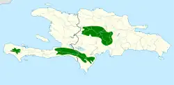 Esta especie se distribuye en algunas islas del mar Caribe: En La Española, tanto en Haití como en República Dominicana.[2] Esta golondrina habita generalmente en claros de bosques, o sabanas, cerca del agua.