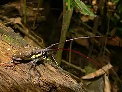 Taeniotes xanthostictus es una especie de escarabajo longicornio del género Taeniotes, tribu Monochamini, subfamilia Lamiinae.[1] Fue descrita científicamente por Bates en 1880.[1]