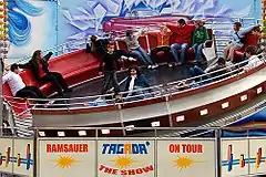 La atracción tagadá es un plato giratorio en el que los que entran tienen que agarrarse fuertemente sin soltarse.[5] Los movimientos bruscos que hace el tagadá provocan que las personas salten o reboten. La regla más importante en el tagadá es no soltarse para no caerse.