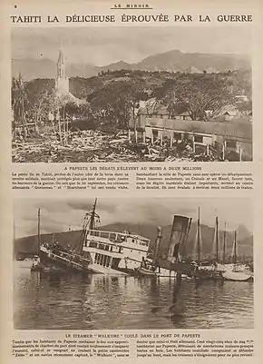 En noviembre y diciembre de 1918, Tahití es devastado por una epidemia de gripe de 1918. Durante la Segunda Guerra Mundial, la colonia se suma desde 1940 a la Francia libre y el comandante Félix Broche reúne varios centenares de voluntarios para unirse a las Fuerzas francesas libres.