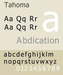 Tahoma es un tipo de letra del tipo sans serif de gran legibilidad, comisionada por Microsoft y diseñada por Matthew Carter.