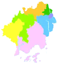 | Ciudad de Guanghai | 7 | Kishi, Johoku, Shuanglong, Jing'an, Zhongxing, Tuancun, Kunpeng | 2 | Guanghai, Huancheng |