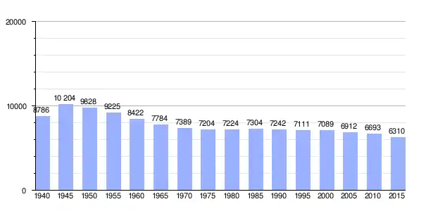 | Gráfica de evolución demográfica de Takagi entre 1940 y 2015 |