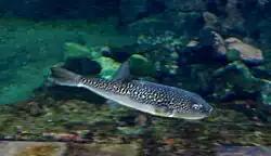 Takifugu poecilonotus es una especie de peces de la familia Tetraodontidae en el orden de los Tetraodontiformes.