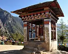 El santuario dedicado a Padmasambhava, también conocido como Gu-ru mTshan-brgyad Lhakhang o "el Santuario del Gurú con Ocho Nombres", se refiere a las Ocho Manifestaciones de Padmasambhava. Es una estructura construida alrededor de la cueva en 1692 por Gyalse Tenzin Rabgye. Se ha convertido en un icono cultural de Bután.[5][6][7] Un festival popular llamado Tsechu, dedicado a Padmasambhava, es celebrado en el valle de Paro durante marzo o abril.[8]