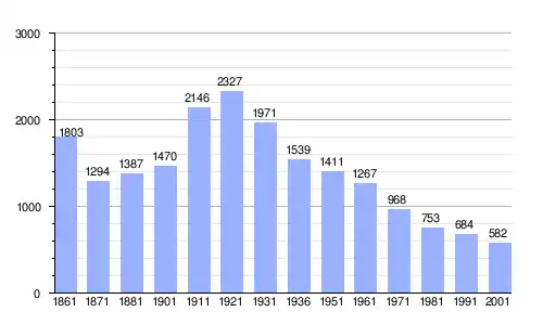 | Gráfica de evolución demográfica de Taleggio entre 1861 y 2001 |