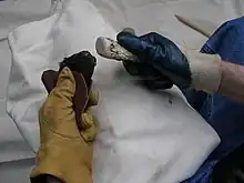 - Los investigadores Javier Baena y Raúl Maqueda han podido emplear este mismo sistema para el retoque, no sólo para la extracción: Javier Baena y Raúl Maqueda (2002). «Nuevo sistema de Retoque por presión, mediante el empleo de una palanca» (Boletín de Arqueología Experimental edición). Madrid, España: Departamento de Prehistoria y Arqueología de la Facultad de Filosofía y Letras de la Universidad Autónoma de Madrid. ISSN 1138-9353