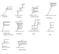 - Adapted from Weaver, Muriel Porter (1993). The Aztecs, Maya, and Their Predecessors: Archaeology of Mesoamerica (3rd edición). San Diego: Academic Press. ISBN 0-01-263999-0.p. 251.