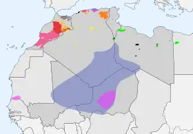 2. Idioma rifeño (Tarifit) en la región del Rif en la parte noreste del país y también en la ciudad española de Melilla.[7][8]