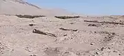 Durante las excavaciones arqueológicas, debajo del pavimento de una de una de las esquinas de la plaza principal se encontraron cuatro llamas momificadas de manera natural y otra en estado de descomposición que mostraban en buen estado los adornos con que fueron engalanadas para una ceremonia de sacrificio, incluyendo pendientes, brazaletes y collares, así como un centenar de ofrendas de cuyes (conejillos de indias). Las tumbas estaban marcadas con plumas tropicales. Los cuyes se encontraron en dos lugares diferentes, con adornos similares a los de las llamas, algunos de ellos envueltos en alfombras antes del entierro[6]. También se encontraron los restos de un perro enterrado en dirección este[7].