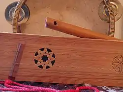 Este instrumento de percusión tiene la particularidad de contar con un número variable de cuerdas ( cuatro a seis) y se ejecuta golpeando sobre ellas con una baqueta de madera desnuda. Normalmente el músico se la coloca apoyada sobre la pierna y el hombro, o bien colgado con una cuerda, batiendo con una mano, mientras con la otra toca una flauta de tres orificios, como el chistu vasco. Un puente móvil permite cambiar la afinación de acuerdo con la música ejecutada. Se lo ha utilizado durante siglos y actualmente se mantiene como instrumento folklórico. En algunas regiones de España se denomina también como "Chicoten".
