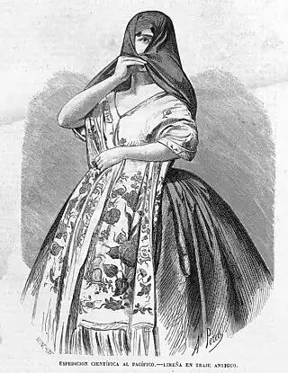 Saya y Manto del año 1854, acuarela de Pancho Fierro