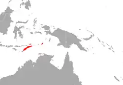 Es endémica de Indonesia, se puede encontrar en las islas de Savu, Roti y Semau y posiblemente en Timor.