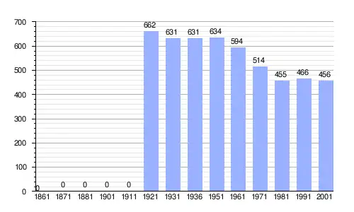 | Gráfica de evolución demográfica de Tapogliano entre 1861 y 2001 |