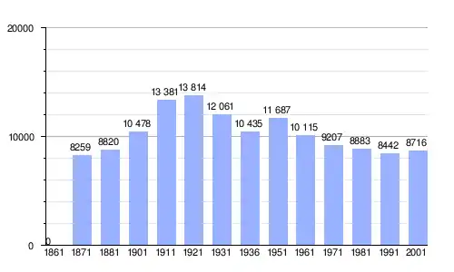 | Gráfica de evolución demográfica de Tarcento entre 1861 y 2001 |