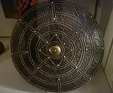 Targe (del Antiguo fráncico *targa "escudo", Protogermánico *targo "borde") era la derivación general para un escudo en el anglosajón tardío. Su diminutivo, *target (objetivo, en inglés), llegó a dar nombre a la palabra inglesa target en el siglo XVIII.