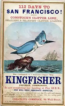 Muchas tarjetas fueron impresas durante el tiempo de la Fiebre del oro de California para atraer viajeros y carga en las ciudades de Nueva York y Boston.[3] Este soporte publicitario fue ampliamente utilizado hasta el los años 1880s y ahora es considerado un objeto de colección.[4]