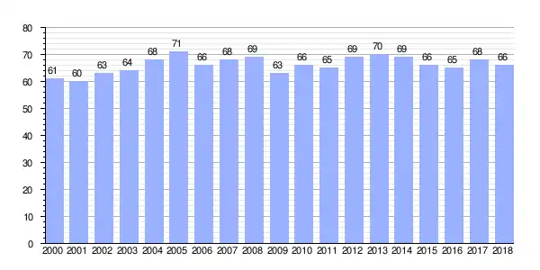 Gráfica de evolución demográfica de Tarreo entre 2000 y 2018