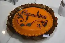 La tarta capuchina es una tarta elaborada principalmente con yema de huevo y almíbar.[1] La tarta suele presentarse en forma cilíndrica o de rectángulo, dependiendo del molde.[2] Se trata de una tarta que se elabora mediante baño maría.[3] Es frecuente que se sirva a temperatura ambiente.