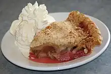 Una porción de tarta de ruibarbo.