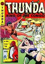 En 1952, Frank Frazetta creó Thun'da, King of Congo para Magazine Enterprises, y el personaje llegó a contar ese mismo año con un serial, King of the Congo, interpretado por Buster Crabbe[57] (actor que en su momento también había interpretado a Tarzán en la serie Tarzan the Fearless del año 1933).[58] Thun'da (cuyo verdadero nombre era Robert Drum) era un aviador de la Fuerza Aérea Americana que se perdió en el Congo, y que allí enfrentaba dinosaurios y otros seres prehistóricos (elementos que también existían en las tradicionales historias de Tarzán, pero limitados al Mundo Perdido de Pal-ul-don[59] y a Pellucidar, otra colección de libros escrita también por Edgar Rice Burroughs[60]), pero que no fueron incluidas en la serie.[61] En la década de 1960, Frazetta ilustró cubiertas de libros de bolsillo de los cuentos de Tarzán publicados por Ace Books.[62]