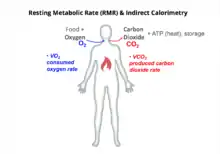 Además, el uso correcto de un calorímetro indirecto bien mantenido incluye lograr un patrón de respiración natural y constante para revelar el consumo de oxígeno y las tasas de producción de dióxido de carbono en una condición de reposo reproducible. La calorimetría indirecta se considera el método de referencia para medir la RMR.[19] Los calorímetros indirectos se encuentran generalmente en entornos clínicos y de laboratorio, pero los avances tecnológicos están llevando la medición de RMR a condiciones de vida libre.