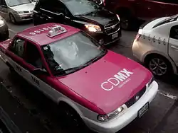 Los taxis en la Ciudad de México son una forma de transporte público.[1][2] En 2014 sumaban un estimado de 140 mil vehículos,[3] siendo una de las flotas de taxis más grandes del mundo. Existen seis tipos de estos vehículos,[4] los cuales cobran mediante un taxímetro que cuenta con cinco tarifas diferentes. La propiedad de cada vehículo es privada y recibe para su funcionamiento una concesión del Servicio de Transporte Público Individual de Pasajeros del Distrito Federal, administrado por la Secretaría de Movilidad (Semovi) del Gobierno de la Ciudad de México. En 2014 estos vehículos realizaban 1 millón 492 mil viajes diarios.[5]