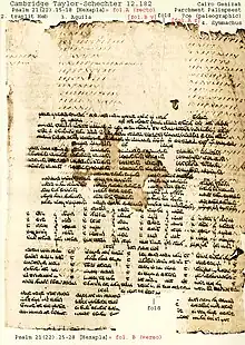 El fragmento Taylor-Schechter 12.182 puede ser unido con otros palimpsestos pertinecientes a la Geniza del Cairo para así formar todo un cuaderno de obras de Yannai, pero ninguno de esos palimpsestos fragmentarios es de la Hexapla de Orígenes.[5]