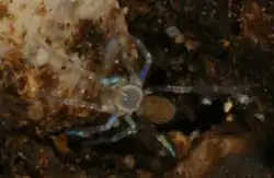 Es una araña pequeña, de aproximadamente 1,6 mm (1⁄16 pulgadas) de longitud corporal total. En relación con su cuerpo, tiene patas largas: la primera pata, la más larga, mide unos 4,3 mm (3⁄16 pulgadas), la tercera pata, la más corta, unos 2,9 mm (1⁄8 pulgadas). Generalmente es de color blanquecino con algunas partes más amarillas. Tiene seis ojos, un grupo de cuatro al frente y dos detrás. Los ojos se describieron inicialmente como obsoletos y sin pigmento oscuro.[3] Más tarde se descubrió que la especie se presenta en una variedad de formas, desde individuos ciegos y despigmentados hasta individuos con ojos grandes y pigmentación oscura.[4]