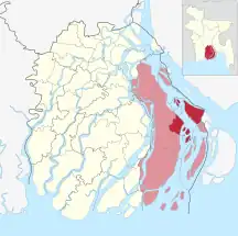 Se encuentra ubicado en el centro-sur del país, junto a la costa del golfo de Bengala y la desembocadura del río Brahmaputra.