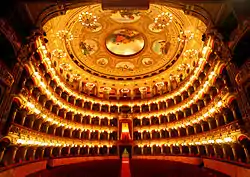 En cambio el Teatro Nuovaluce parcialmente construido en 1865 fue destinado a la tarea del arquitecto Carlo Sada en 1870 y completado para estreanrse en mayo de 1890. En barroco siciliano, la herradura tiene 4 niveles de palcos y la cúpula muestra frescos describiendo las óperas de Bellini.