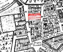 ![]() Vista de finales del siglo XIX de la fachada del primitivo teatro construido entre 1609 y 1611. | ||