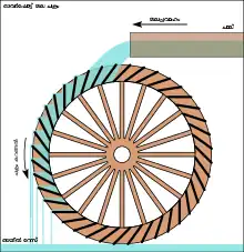 La energía del agua se aprovechaba mediante el uso de ruedas hidráulicas, que tenían dos tipos de diseños generales: aprovechando el caudal por la parte inferior o por la parte inferior. La rueda hidráulica inferior generaba energía a partir del flujo natural de un curso de agua corriente que empujaba las paletas sumergidas de la rueda. La rueda de agua de carga superior generaba energía haciendo que el agua fluyera sobre sus paletas desde arriba. Por lo general, esto se lograba construyendo un acueducto para hacer llegar el agua por encima de la rueda. Aunque es posible hacer que la rueda hidráulica superior sea un 70 por ciento más eficiente que la inferior, esta última era generalmente el modelo preferido. La razón es que el costo de construir un acueducto era demasiado alto para el leve beneficio de que la rueda hidráulica girara más rápido. Su propósito principal era generar energía para las operaciones de molienda y elevar el agua por encima de la altura natural de un sistema. También existe evidencia de que se utilizaron ruedas hidráulicas para impulsar el funcionamiento de las sierras, aunque solo quedan escasas descripciones de tales dispositivos.[3]