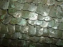 Si bien las armaduras pesadas e intrincadas no era infrecuentes (catafractos), los romanos perfeccionaron una armadura de torso completa relativamente ligera hecha de placas segmentadas (la lorica segmentata).[30] Esta armadura segmentada proporcionaba una buena protección de las áreas vitales del torso, pero no cubría tanto el cuerpo como la lorica hamata o cota de malla. La lorica segmentata proporcionaba una mejor protección, pero sus escamas de hierro eran caras y difíciles de producir, además de complicadas de reparar en campaña. En general, la cota de malla era más barata, más fácil de producir y más sencilla de mantener, era de talla única y más cómoda de usar; por lo tanto, seguía siendo la forma principal de armadura incluso cuando se usaba la lorica segmentata.