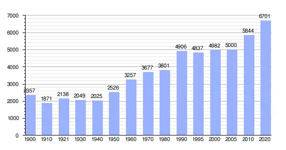 6701 hab.[1] • 3135 hombres • 3566 mujeres | |