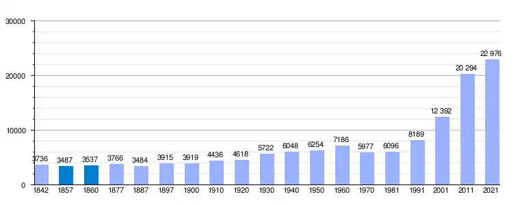 | Gráfica de evolución demográfica de Teguise[8] entre 1842 y 2021 |