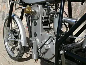 - Lubricación: con aceite en el cárter, sistema de salpicado por medio de una aguja en la biela (cucharita), circulación automática en caja de cambios, embrague y distribución, (sin bomba de aceite)